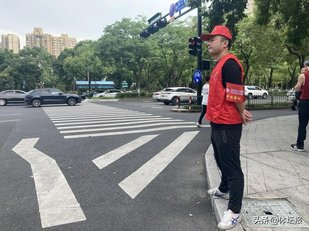 當記者前往體育中心另外兩個路口時,就發現身穿紅馬甲志願者在路口做引導服務。他們是來自四季青街道的志願者,在場館附近的路口、公交站、地鐵站保障此次賽事。姚忠平告訴記者,爲方便觀衆快速抵達場館,經協調公交公司,在地鐵站錢江路站安排公交免費接駁到場館,同時也是倡導綠色出行。