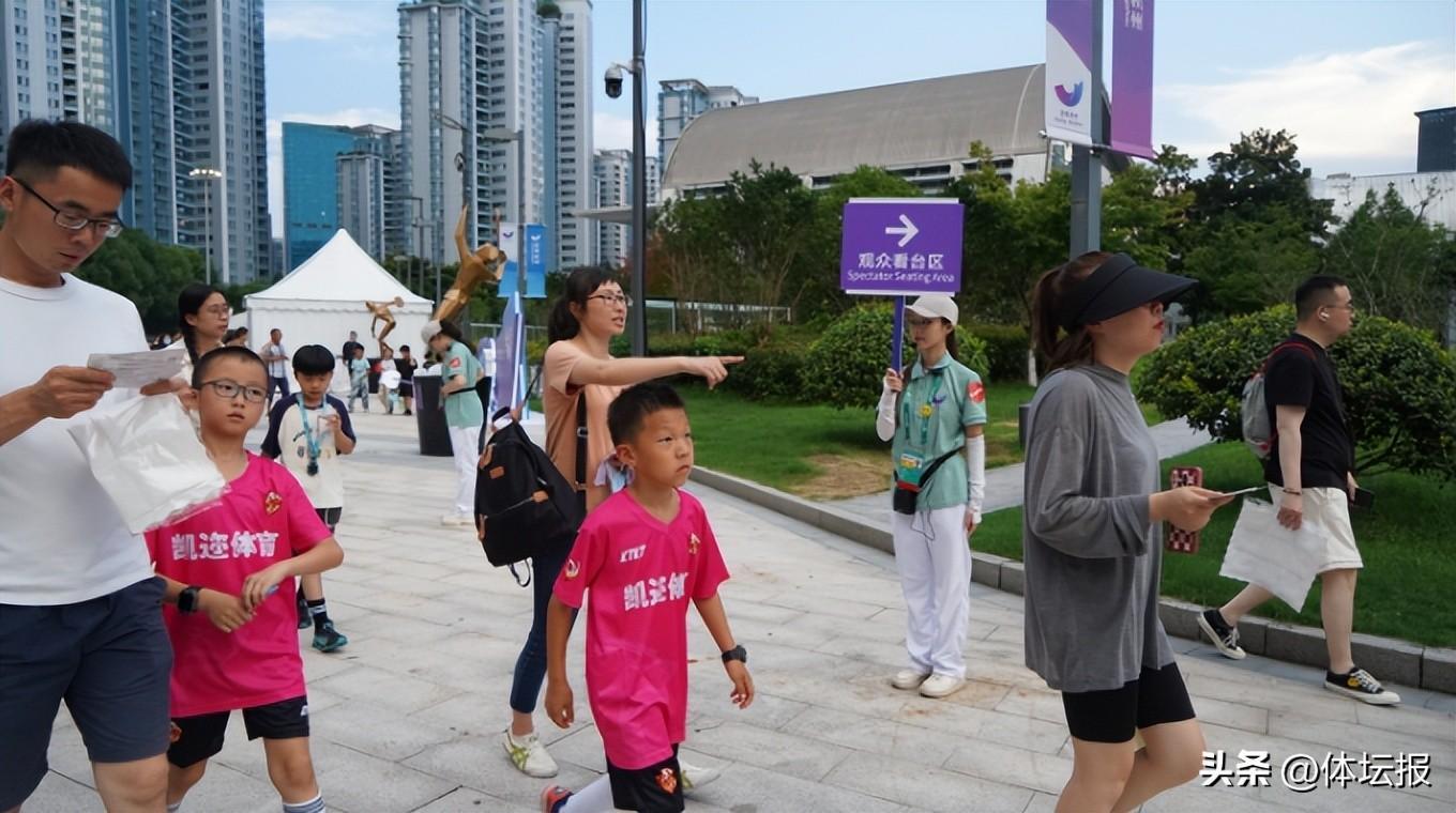 比賽當晚還有220名志願者活躍在場館各個角落,服務觀衆的志願者尤爲辛苦。他們不僅引導觀衆進場,還“客串”攝影師爲觀衆拍打卡合照。比賽當晚氣溫仍挺高,志願者在入口處爲觀衆免費發放冰墊,讓他們有更舒適的觀賽體驗。