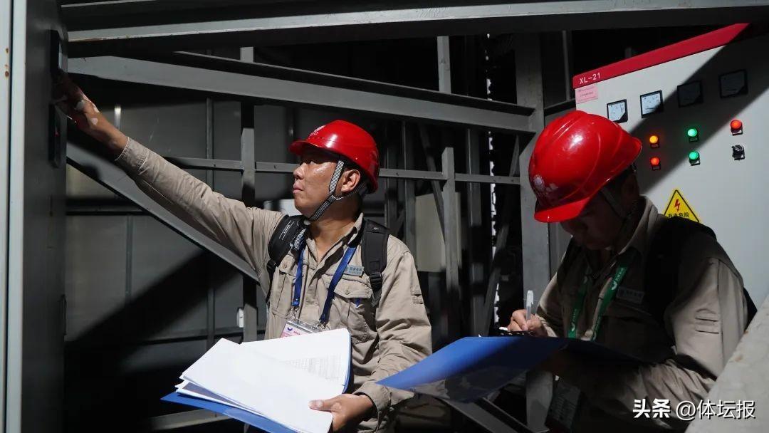 距離比賽還有1個小時,電力保障人員團隊正對配電房、配電櫃等電力設施檢查。