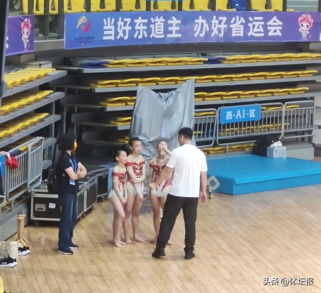 9月28日下午進行的技巧女子三人預賽中,紹興隊的三名選手在教練指導下最後走了一遍動作流程,然後深呼吸,昂首闊步進場。