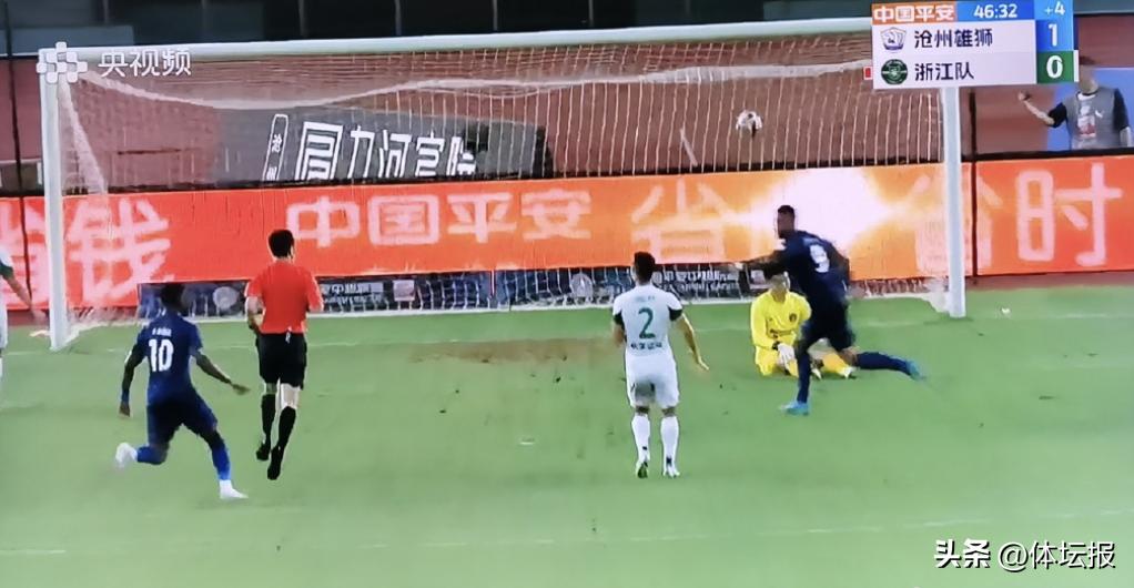 比賽一開始,第6分鐘,滄州奧斯卡橫傳助攻,奧烏蘇包抄將球打進,主場坐鎮的滄州雄獅就給浙江隊來了一個下馬威。隨後,埃弗拉與穆謝奎的前場組合一直尋求機會將比分扳平,但無奈多次錯過良機。