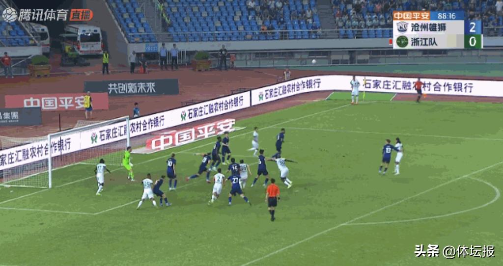 不過,逆境中的浙江隊員們並沒有放棄,控球率一度來到80%,一直在尋求機會得分。第88分鐘,浙江隊利用角球機會,盧卡斯躍起頭球破門,將比分扳回一城。