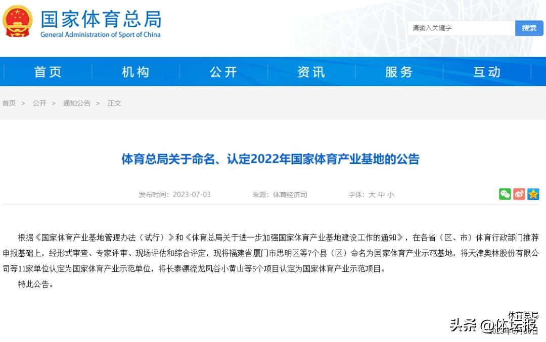 日前,國家體育總局正式公佈了2022年國家體育產業基地的認定名單,我省共有4個示範基地/單位/項目上榜。