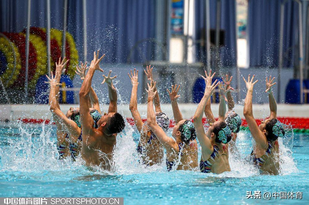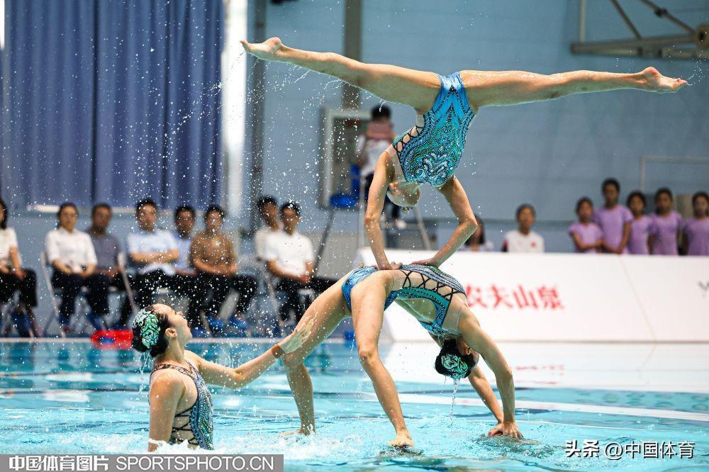 中國體育訊 7月3日,中國花樣游泳隊出征福岡世錦賽模擬賽在國家體育總局訓練局花樣游泳隊訓練館舉行。中國花樣游泳隊的隊員們展示了集體、雙人、混雙項目的多套參賽節目,進一步檢驗了成套節目效果。(中國體育圖片 安靈均 攝)