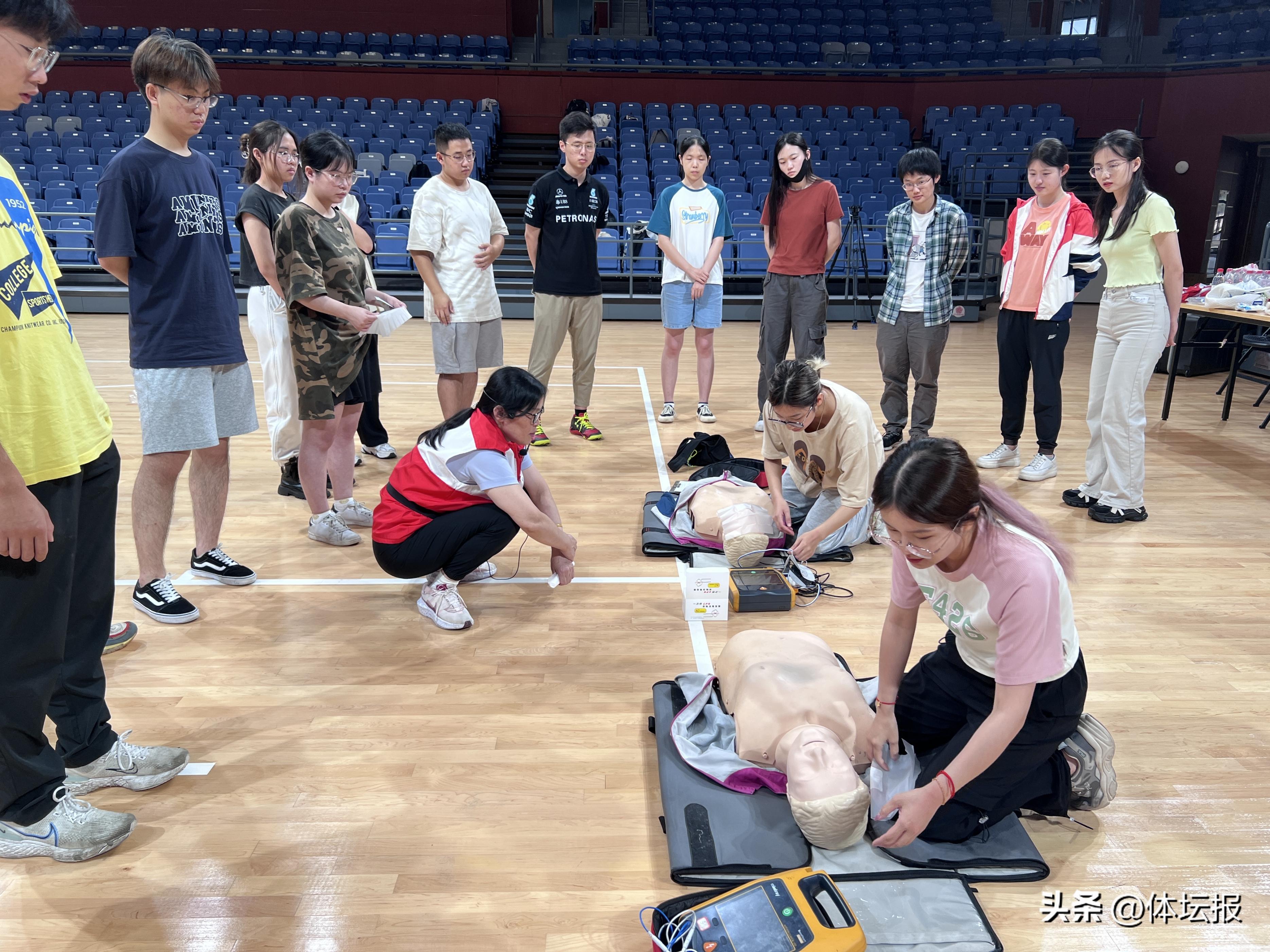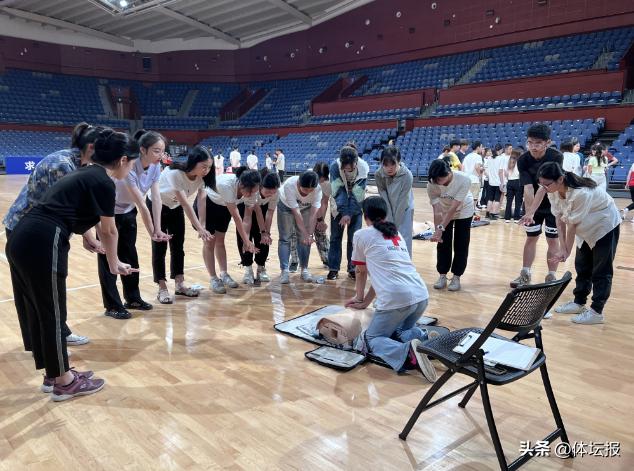 急救培訓分爲理論講授與實操訓練兩部分,講授內容包括心肺復甦、AED(自動體外除顫器)使用、海姆立克急救法和創傷包紮外固定方法以及創傷救護、氣道異物梗阻等情況的應急救護技能。培訓師利用人體模型進行現場實操演示,並邀請多名志願者上臺配合演示,爲在場的志願者們上了一堂生動形象的急救培訓課。