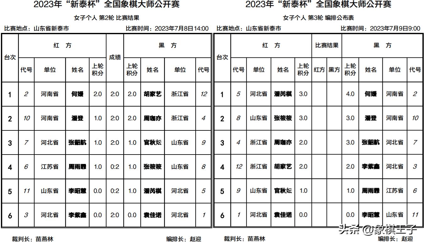 女子組,兩場過後,何媛二連勝,4分霸榜,潘芮棋、潘登、張韶航、張筱筱3分。