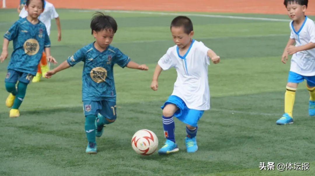 別看選手們只有五歲左右的年紀,踢起球來可是有模有樣的。他們在烈日下全力奔跑、積極拼搶,贏得了教練員與觀衆們的陣陣喝彩。