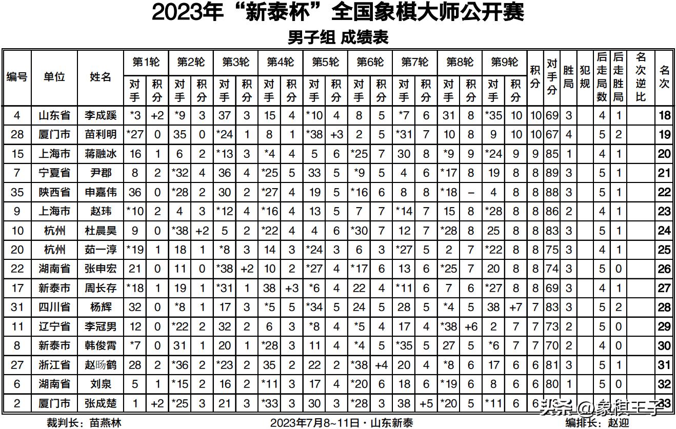 鄭宇航第七,李學淏第八,張蘭天、郭鳳達、尹昇、吳魏、宿少峯、楊世哲、劉子煬、蔣明成9-16。