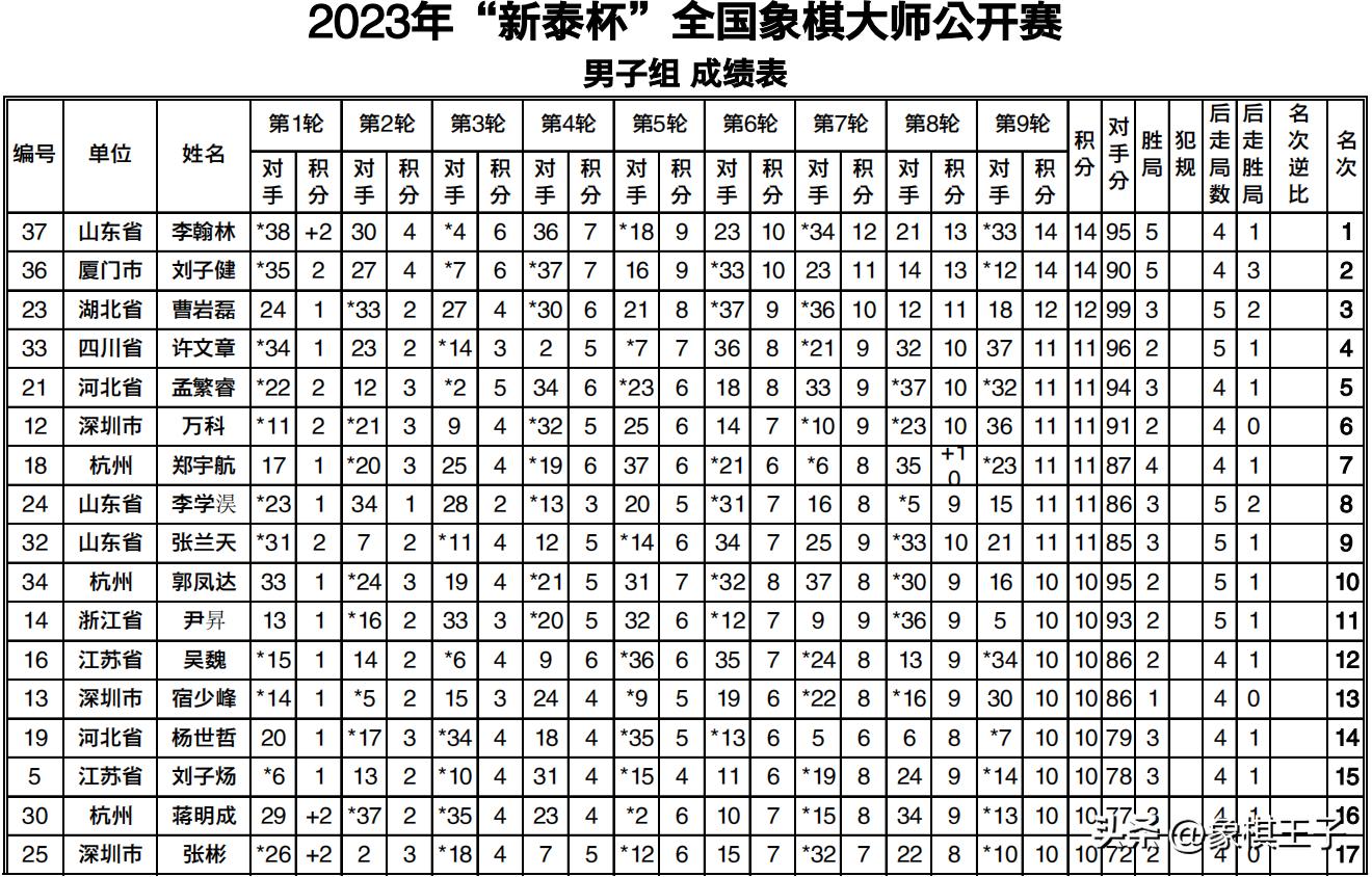 末戰李翰林戰平許文章,積14分坐二望一,曹巖磊打平鄭宇航,取得第三,許文章第四,孟繁睿第五。