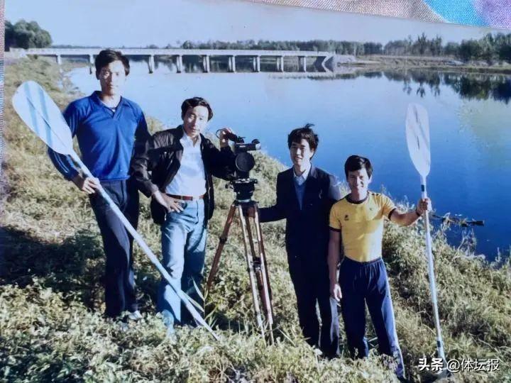 30年前,划行途中,蔣衛民(左一)和徐水強(右一)接受媒體採訪