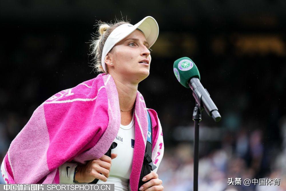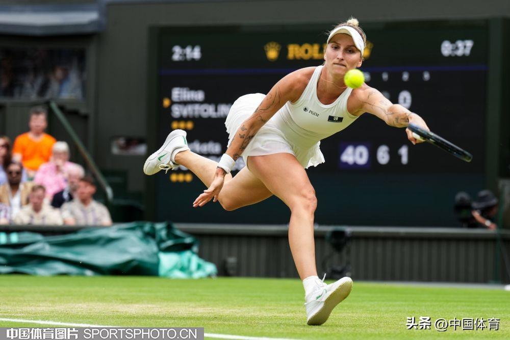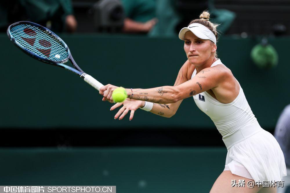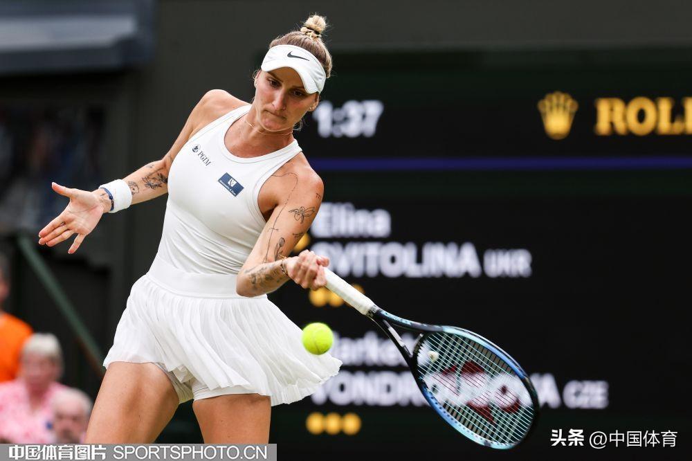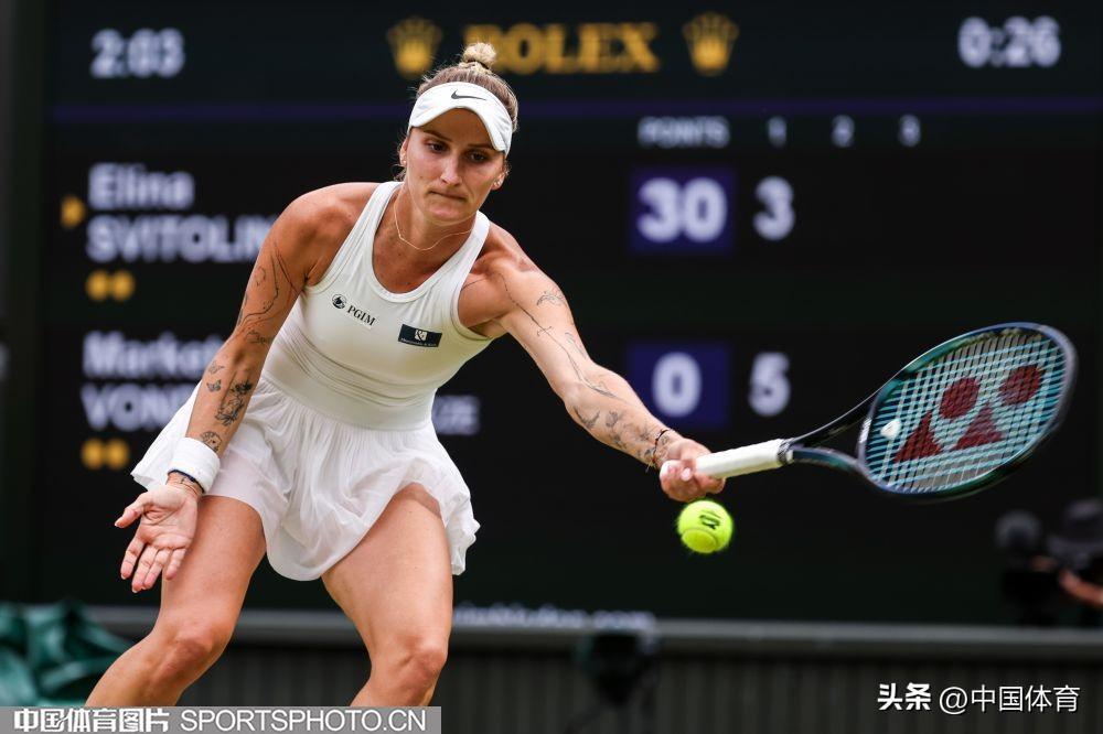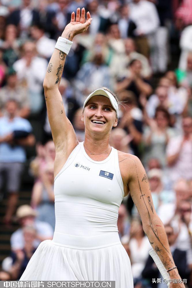 中國體育訊 當地時間7月13日,溫布爾登網球錦標賽進行了女子單打半決賽的較量。捷克選手瑪可塔·萬卓索娃以2比0戰勝烏克蘭選手伊莉娜·斯維託麗娜,晉級決賽。獲勝後,萬卓索娃拿到1300分,即時排名來到NO.15,距離職業生涯最高的NO.14僅差1位。(中國體育圖片 唐詩 攝)