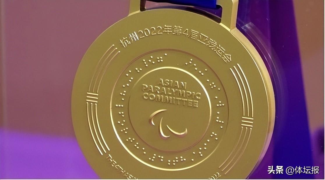 背面以亞殘奧委會標誌爲中心環繞盲文,具有很高的辨識度,其中盲文的釋義爲:杭州第4屆亞殘運會金牌、銀牌、銅牌。