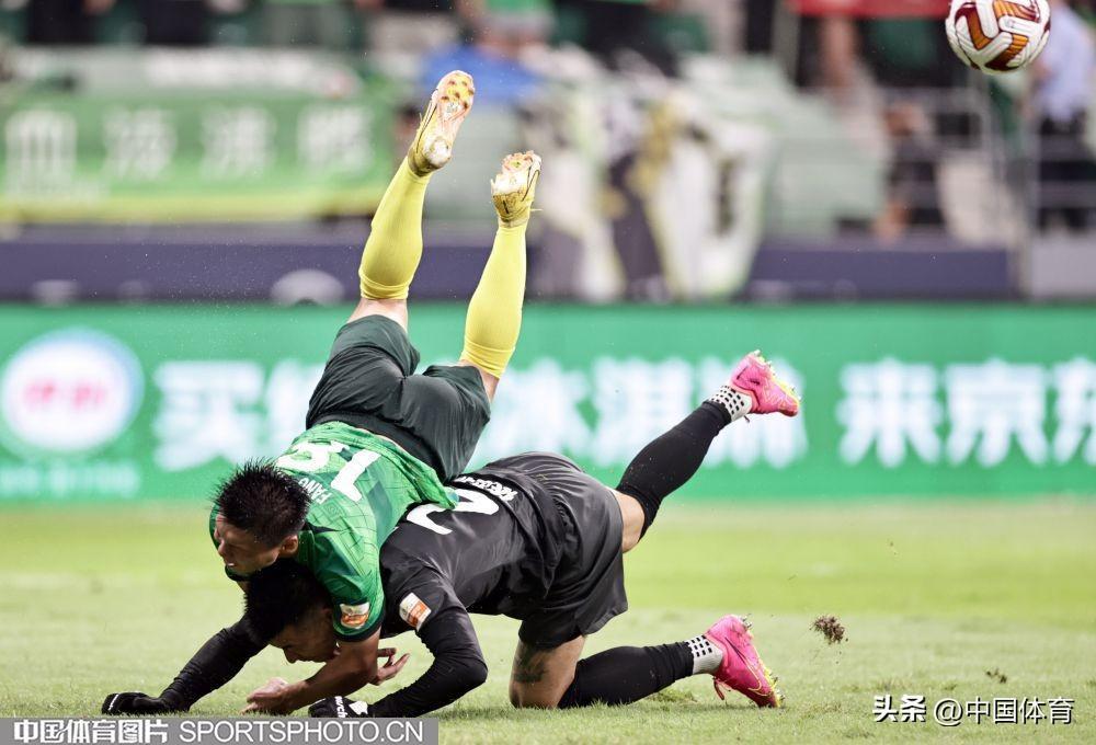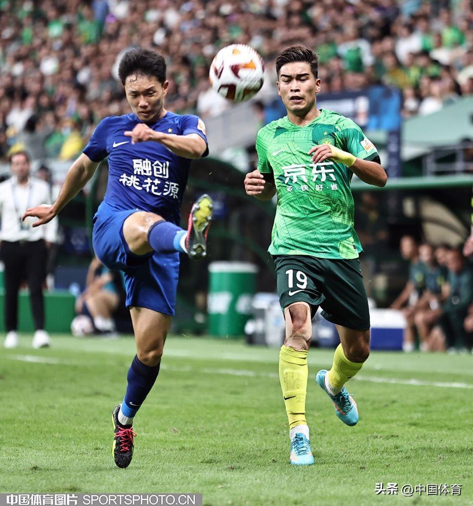 中國體育訊 7月16日,2023賽季中國足協超級聯賽繼續第十六輪爭奪。在北京工人體育場,主場作戰的北京國安隊(綠衣)以1比1戰平武漢三鎮隊(藍衣)。上半場第15分鐘,國安阿代米邊路傳中,方昊中路搶點破門;下半場第81分鐘,斯坦丘任意球罰入禁區,李揚頭球破門,武漢三鎮將比分扳平。(中國體育圖片 王憲民 攝)阿代米(左)爭頂頭球方昊慶祝進球方昊與守門員劉殿座倒地乃比江·莫合買提(右)邊線傳球乃比江·莫合買提(右)在比賽中德索薩(左)爭搶阿齊茲(左)突破