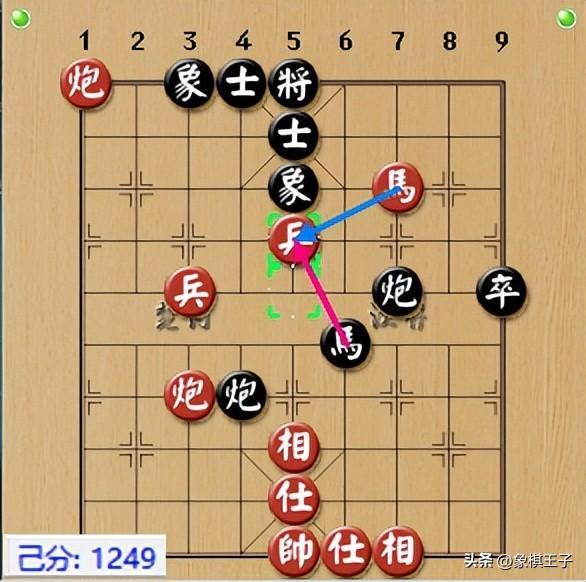 紅方飛相抓馬,黑未算及馬3進1,馬被抓死的招,這手非常隱蔽,黑徑直踢馬就踏兵而去。