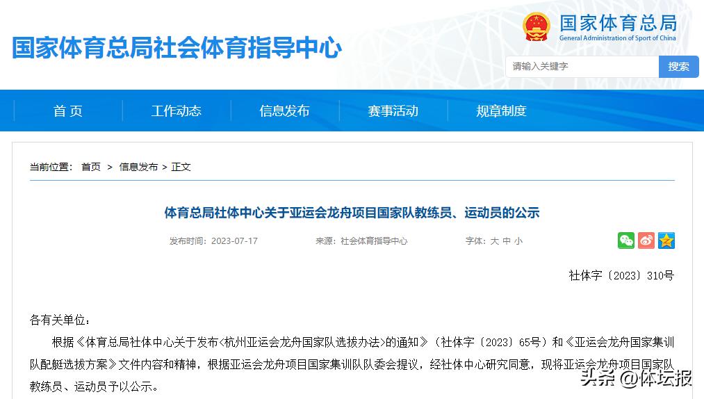 亞運會龍舟項目國家隊教練員、運動員的公示