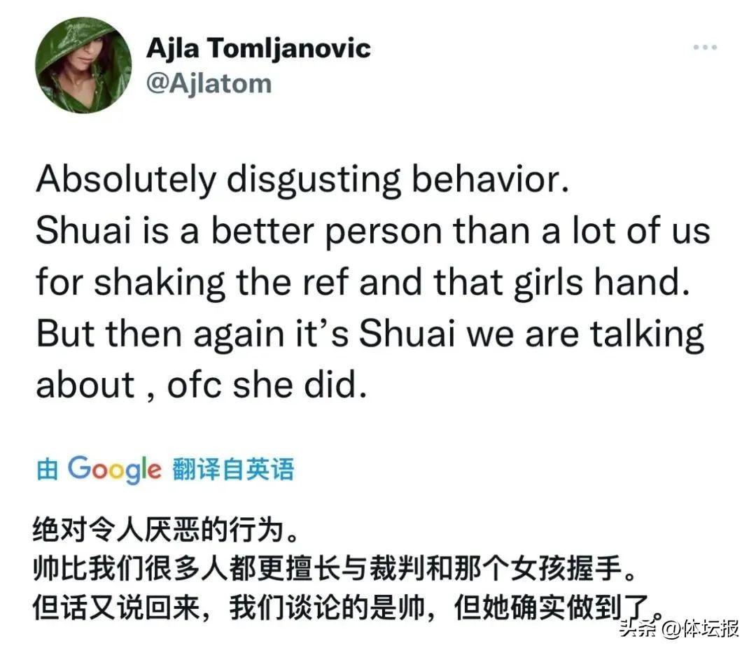 隨後,張帥也在微博曬出視頻表達了自己的憤怒,"所有的努力在訓練中可能都是錯誤的,尤其是當你設定的擊球目標是接近線,甚至是觸碰到了線、依然會被叫OUT……"同時,她也感謝那些支持自己的男孩、女孩們。