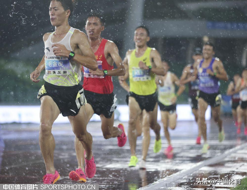 男子5000米決賽中,貴州隊毛金虎以14分00秒17折桂,北京隊聶登宇和另一位貴州隊選手李金豪分列二、三位,成績分別爲14分00秒93和14分04秒05。(完)