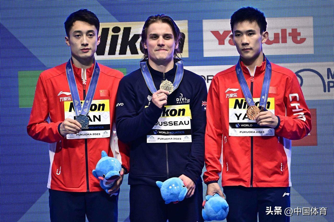 中國體育訊 北京時間7月22日,2023年福岡游泳世錦賽跳水比賽決出最後兩枚金牌。混雙3米板決賽中,中國組合朱子烽/林珊不負衆望,以326.10分成功衛冕。男子10米臺前三名合影留念(圖片來源世界泳聯官網)壓軸大戰男子10米臺決賽中,中國選手練俊傑、楊昊分獲銀牌和銅牌,成績分別爲512.35分和504.00分,澳大利亞選手魯索以520.85分奪冠。至此,本屆世錦賽跳水比賽全部結束。中國隊豪取13枚金牌中的12枚,繼續捍衛世界霸主地位。(完)