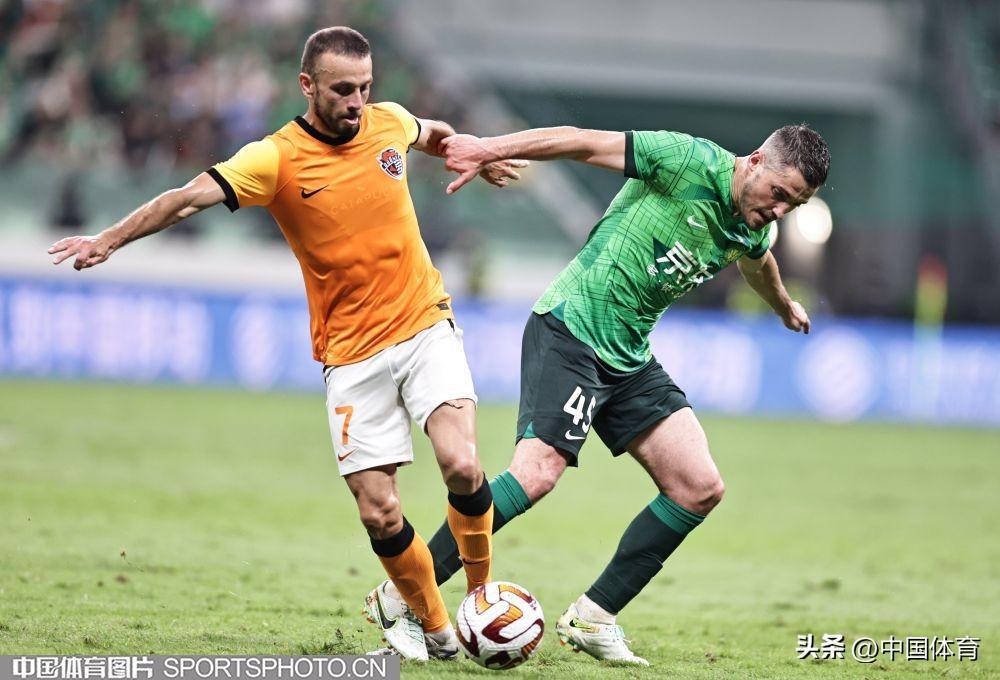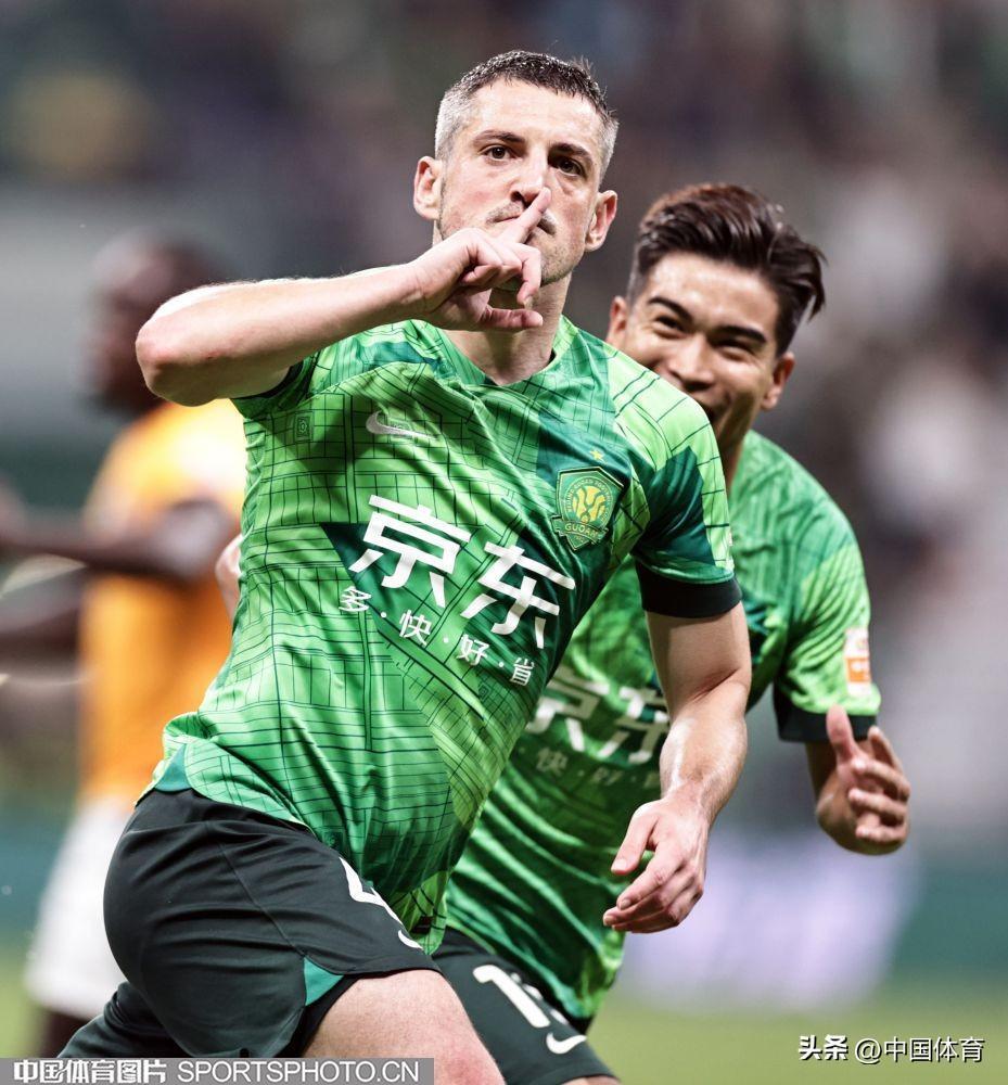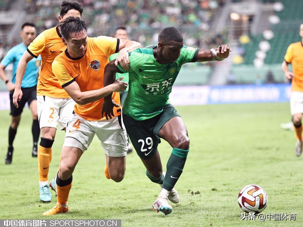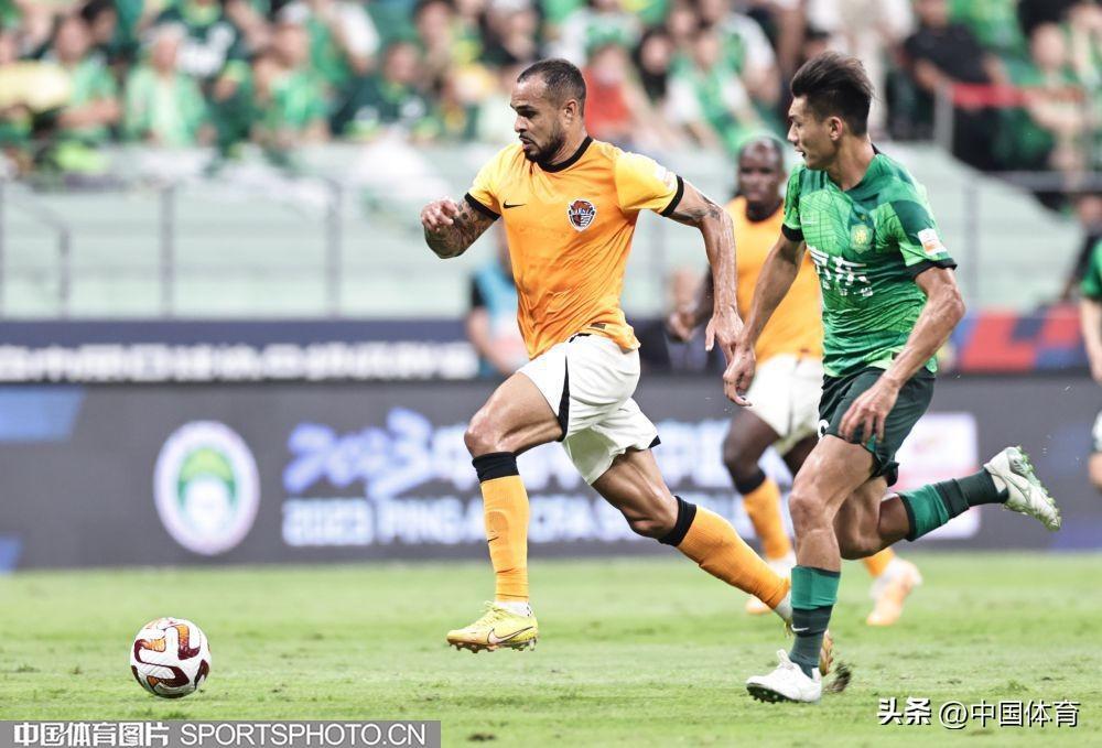 中國體育訊 7月22日,2023賽季中國足協超級聯賽繼續第十七輪爭奪。在北京工人體育場,主場作戰的北京國安隊(綠衣)以2比0戰勝青島海牛隊(橙衣)。北京國安隊的兩粒進球分別由阿代米和姜祥佑在下半場打入。(中國體育圖片 王憲民 攝)門將韓佳奇(左)和塔貝克馬興煜(中)突破福布斯帶球突破福布斯射門阿代米搶斷阿代米慶祝進球高天意突破姜祥佑慶祝進球法比奧帶球過人