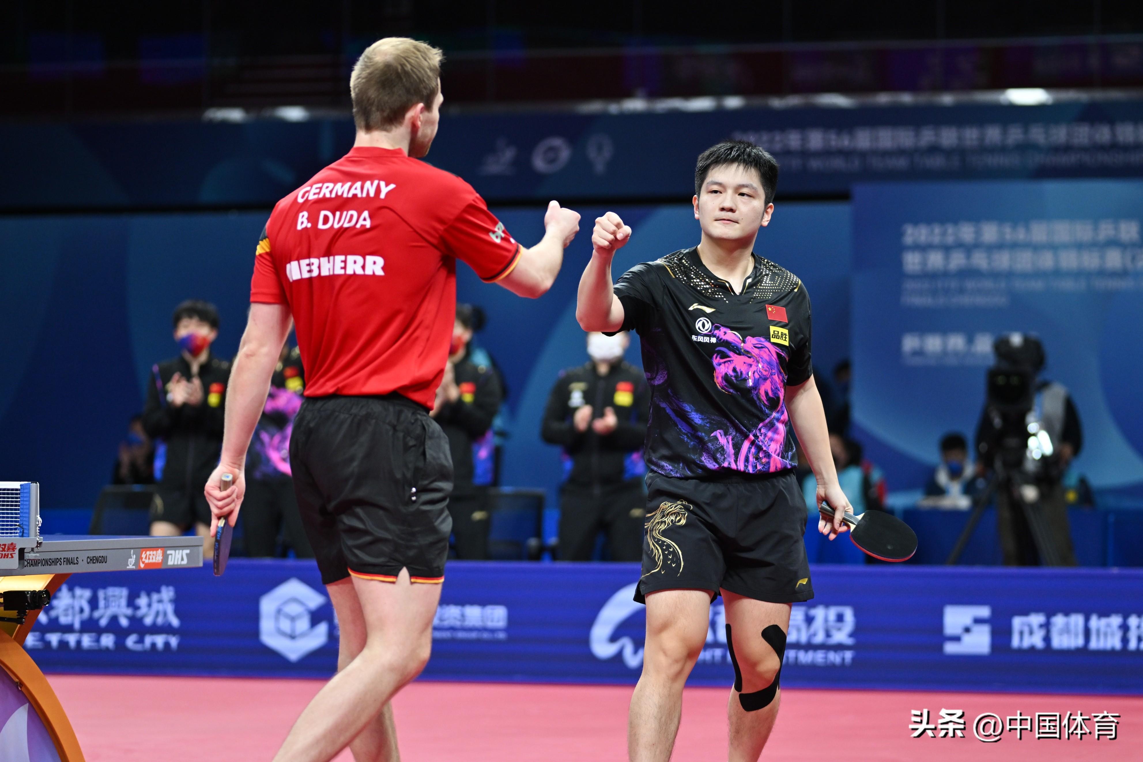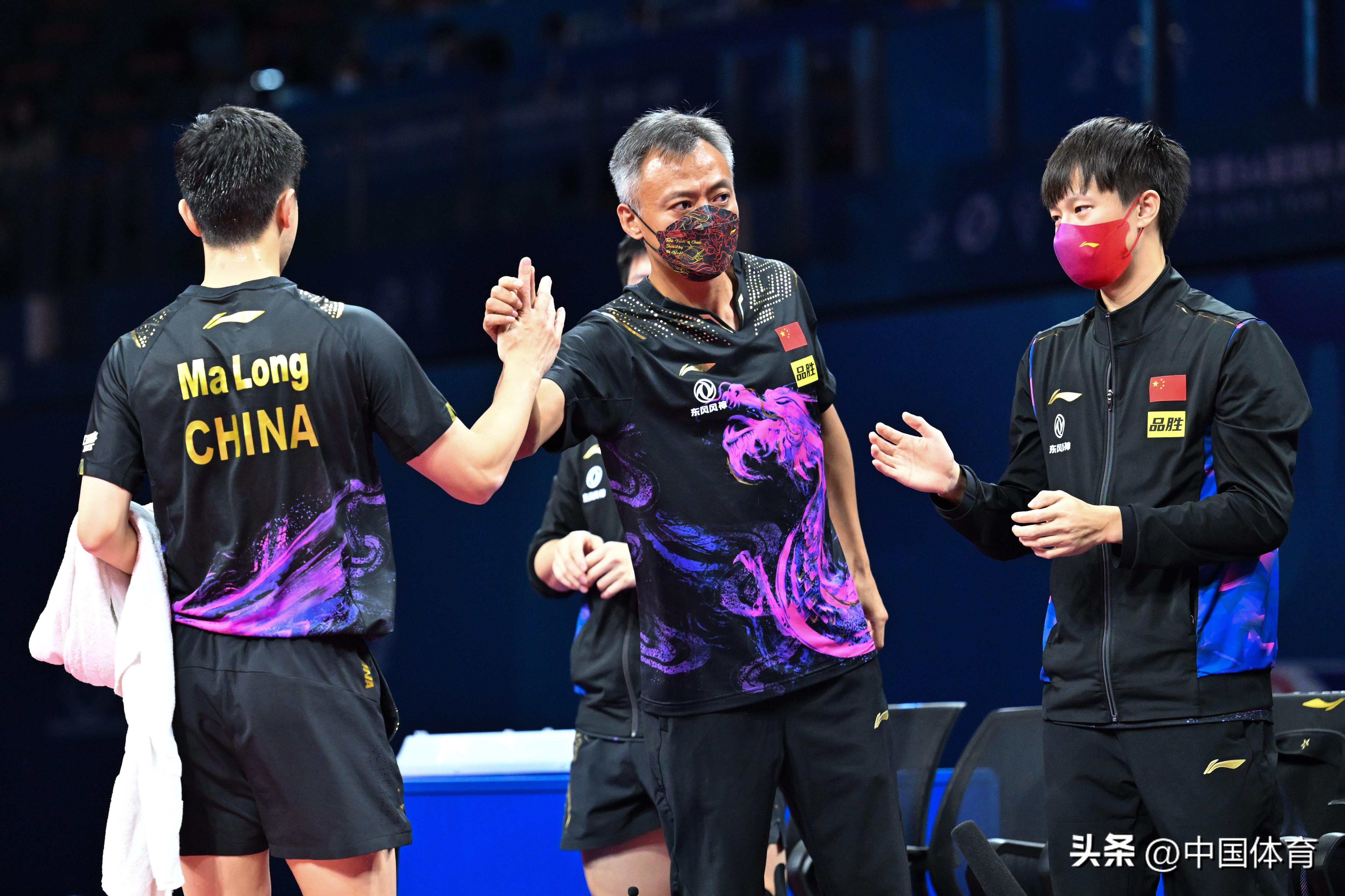 中國體育訊 10月9日晚,成都世乒賽團體賽迎來收官大戰男團決賽,對陣雙方是中國隊和德國隊。最終中國隊以3比0橫掃對手,贏得十連冠。決賽第一場,樊振東以3比0戰勝杜達;第二場馬龍以3比1戰勝邱黨;第三場王楚欽以3比0戰勝凱·斯塔姆珀。祝賀中國隊!(中國體育圖片 白宇 攝)