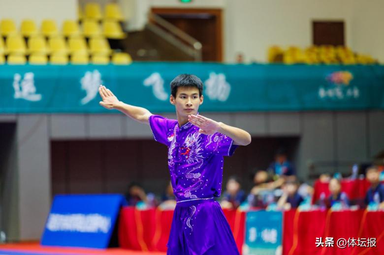 在首先進行的男子甲組長拳比賽中,參賽選手個個精神抖擻,衝拳、推掌、劈掌、砸拳、頂肘等動作剛柔並濟、氣勢如虹。精彩紛呈的競技展示贏得場上觀衆陣陣掌聲和吶喊聲,這場武藝高強的比賽,讓現場觀衆體驗了一把“武林爭霸”的魅力。最終,來自溫州隊的蔡尹童以全場最高分拿下首金。