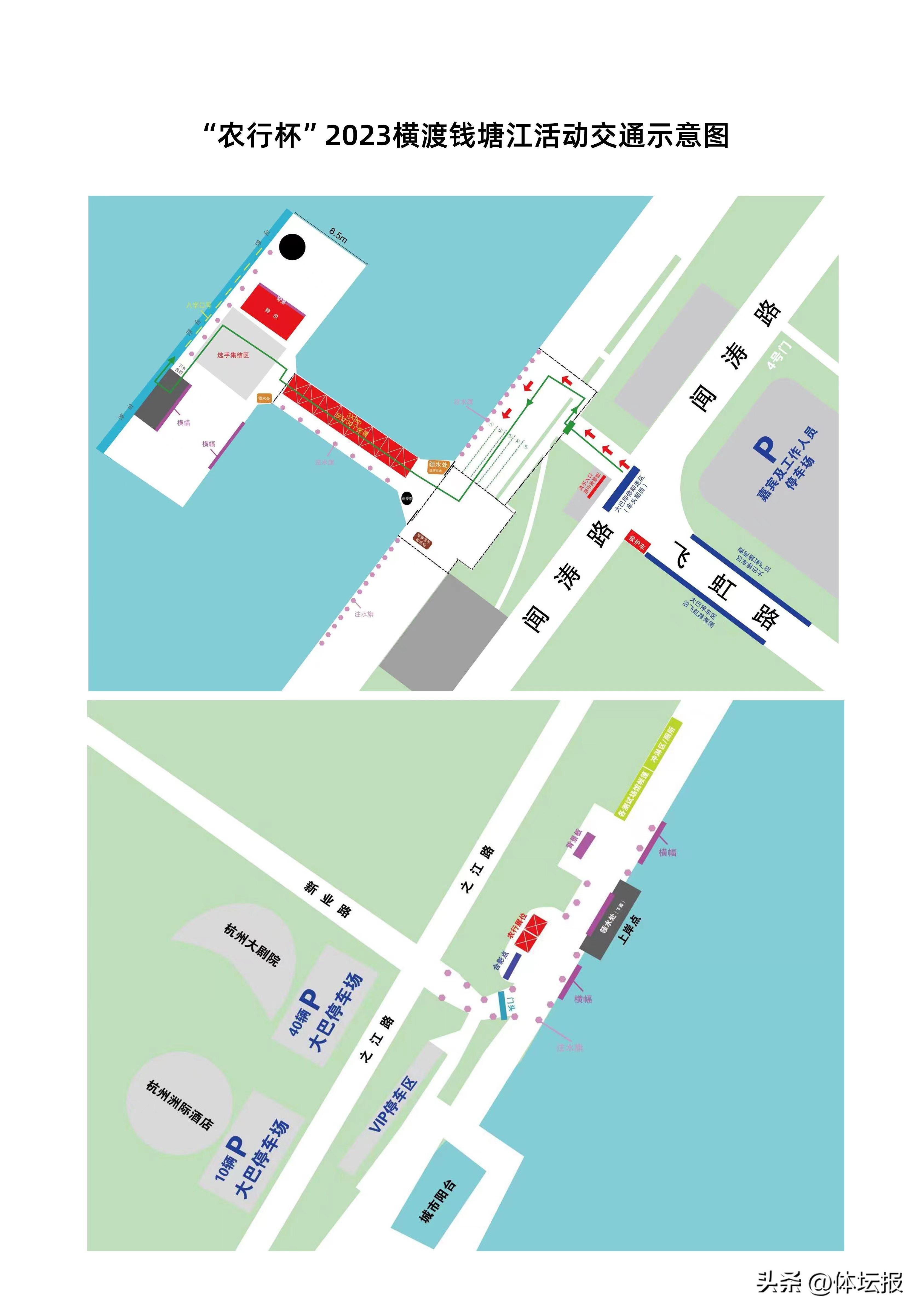 橫渡的起點設在錢塘江南岸海事碼頭,終點在城市陽臺處,自行前往的市民不要跑錯了,因爲往年都會有搞錯起終點的“馬大哈”。