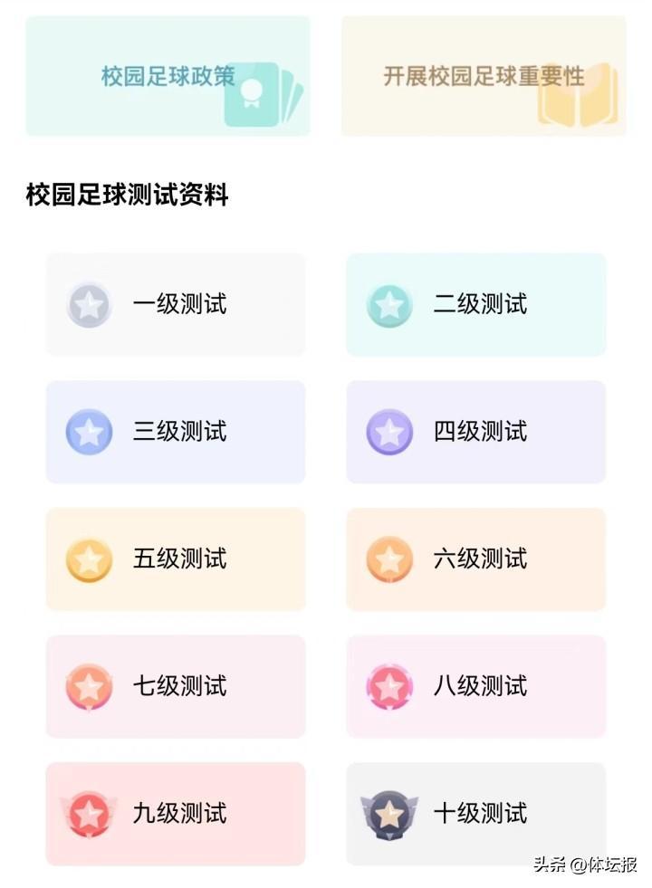 據瞭解,杭州市青少年足球技術技能等級稱號(以下簡稱“等級稱號”)依照相關測評、申請程序獲得。等級稱號分爲 1-12 級,最低爲 1 級,最高爲 12 級。其中,1-3 級爲“入門”級,4-6 級爲“基礎”級,7-9 級爲“提高”級,10-12 級爲“精英”級。其中1-10 級等級稱號通過技術技能測試逐級獲取,11-12 級等級稱號通過相應的足球比賽成績直接獲取。