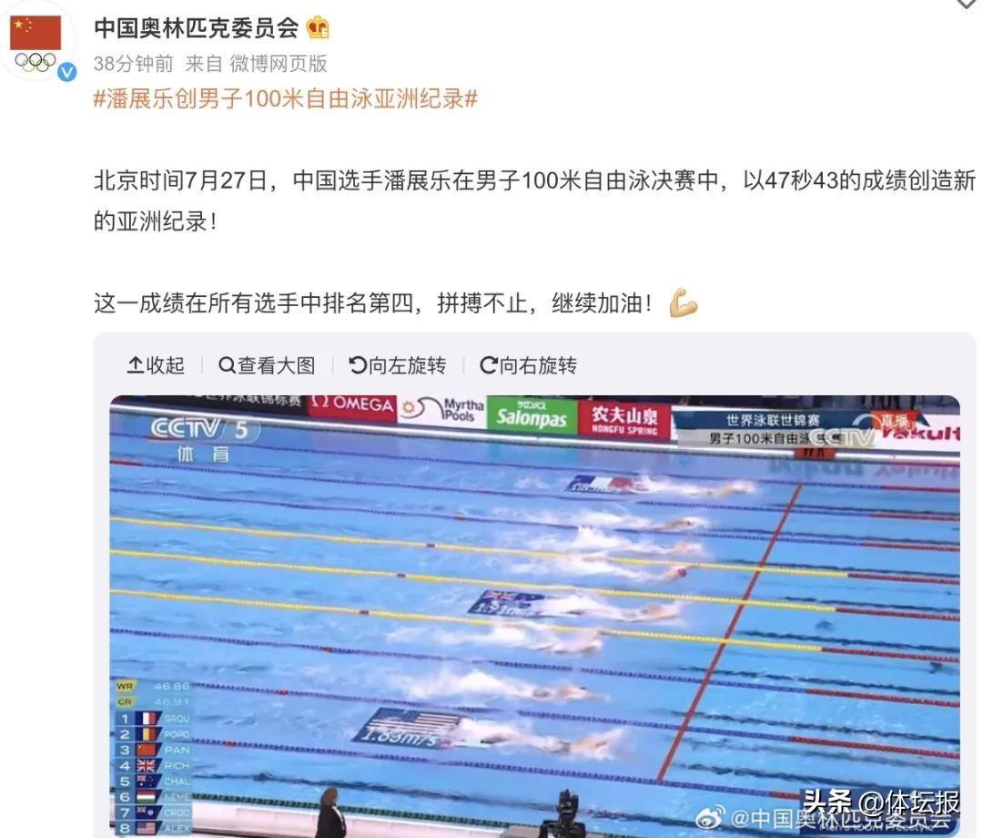 此前,黃宣優在本次比賽拿到200米自由泳銅牌後,在社交軟件分享了奪牌合照的內容,潘展樂給他留言“You are great!”