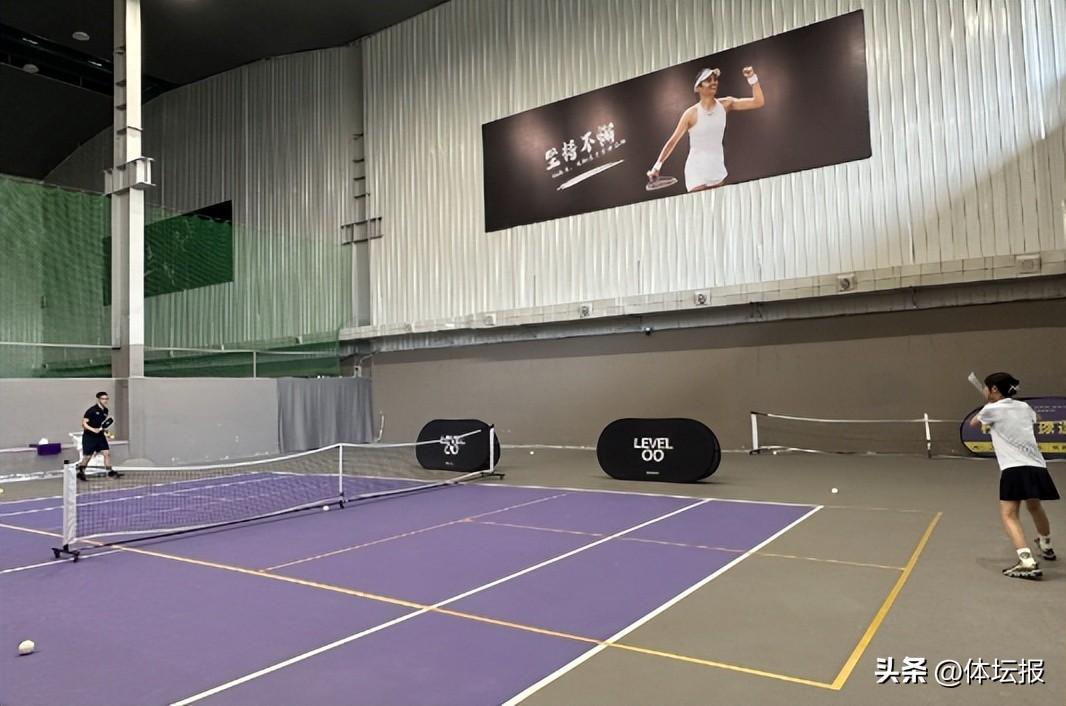 杭州蕭山的檸萌網球館,經過簡單佈置,一片匹克球場就出現在眼前,面積是網球場的四分之一,對角線將球場分爲左右發球區,中間再由球網隔開,不少網球學員在此“入坑”了匹克球。