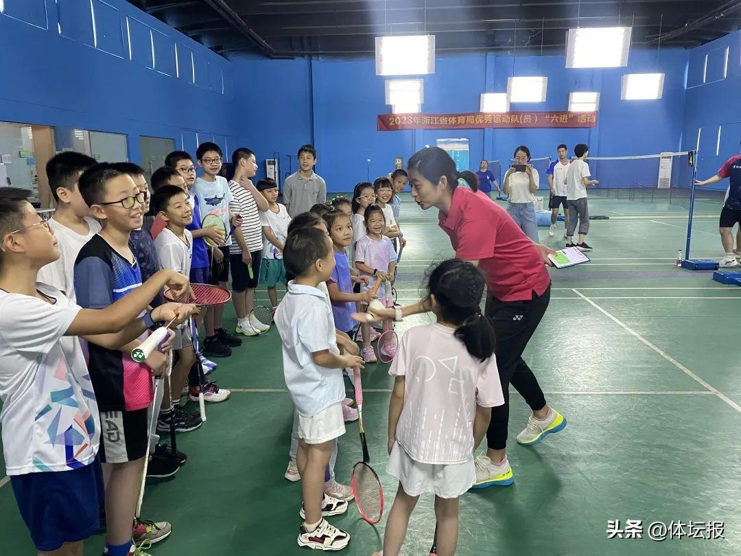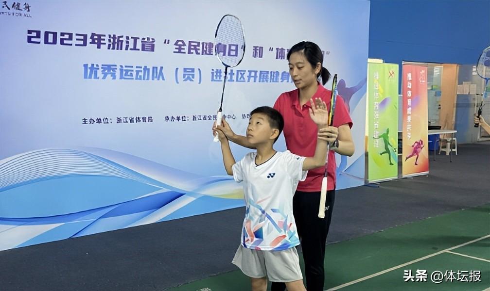 8月3日,在浙江體育職業技術學院教工路校區羽毛球館內,世界冠軍王琳正在給羽毛球愛好者進行動作指導。