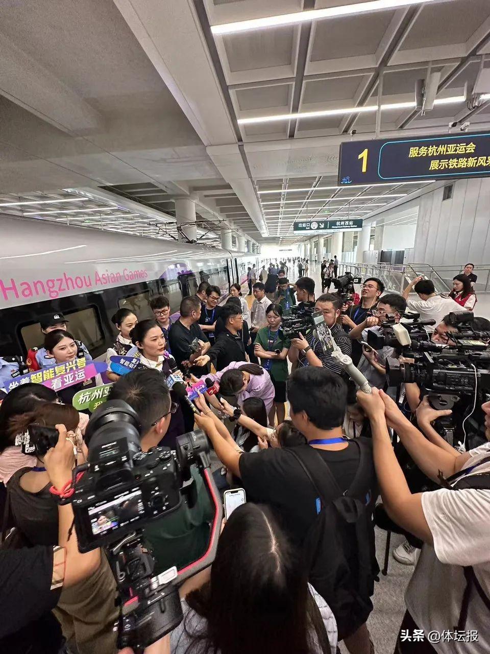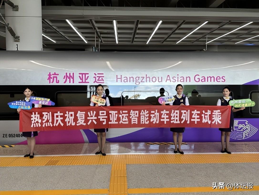 8月4日,正值杭州亞運會倒計時50天,專爲亞運會打造的“復興號”亞運智能動車組列車迎來首次試乘體驗活動。