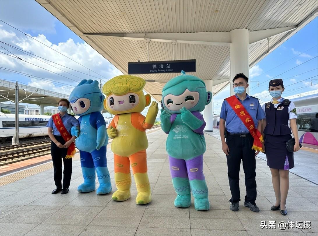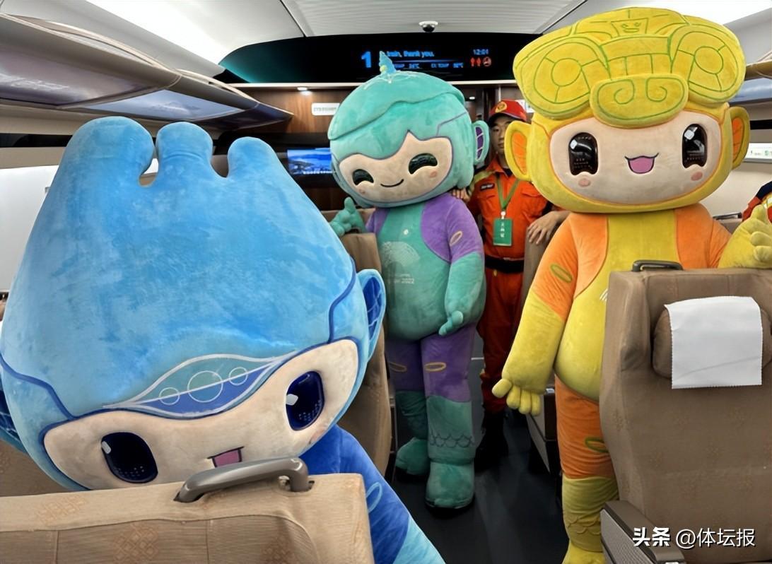 本次試乘活動,亞運會吉祥物組合“江南憶”也驚喜亮相,“吉祥三寶”琮琮、蓮蓮、宸宸化身活潑可愛的“顯眼包”和乘客們互動合影,更是配合車內工作人員共同演繹亞運歌曲《等你來》,以及對杭州客運段雙語服務和手語進行了展示。