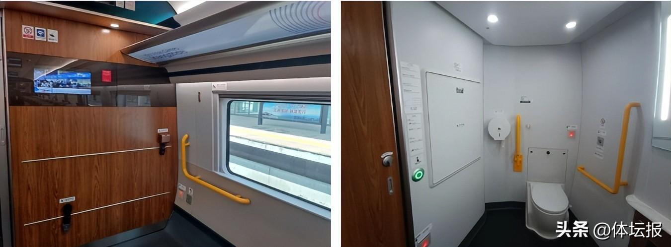 並且記者發現,列車專門設置了無障礙車廂,加寬到900毫米的通過門、無障礙衛生間、輪椅放置區域等可爲重點旅客出行提供方便。此外,該車廂在座椅、輪椅固定處、衛生間等便於視障旅客觸摸的區域設置盲文標識,對車廂佈局進行優化,設計功能按鈕、座位號提示等功能,特殊旅客在乘車時也能感受到方便、無阻礙。
