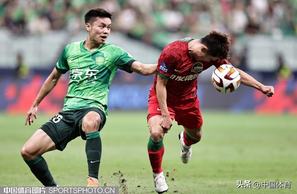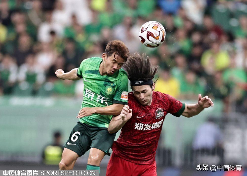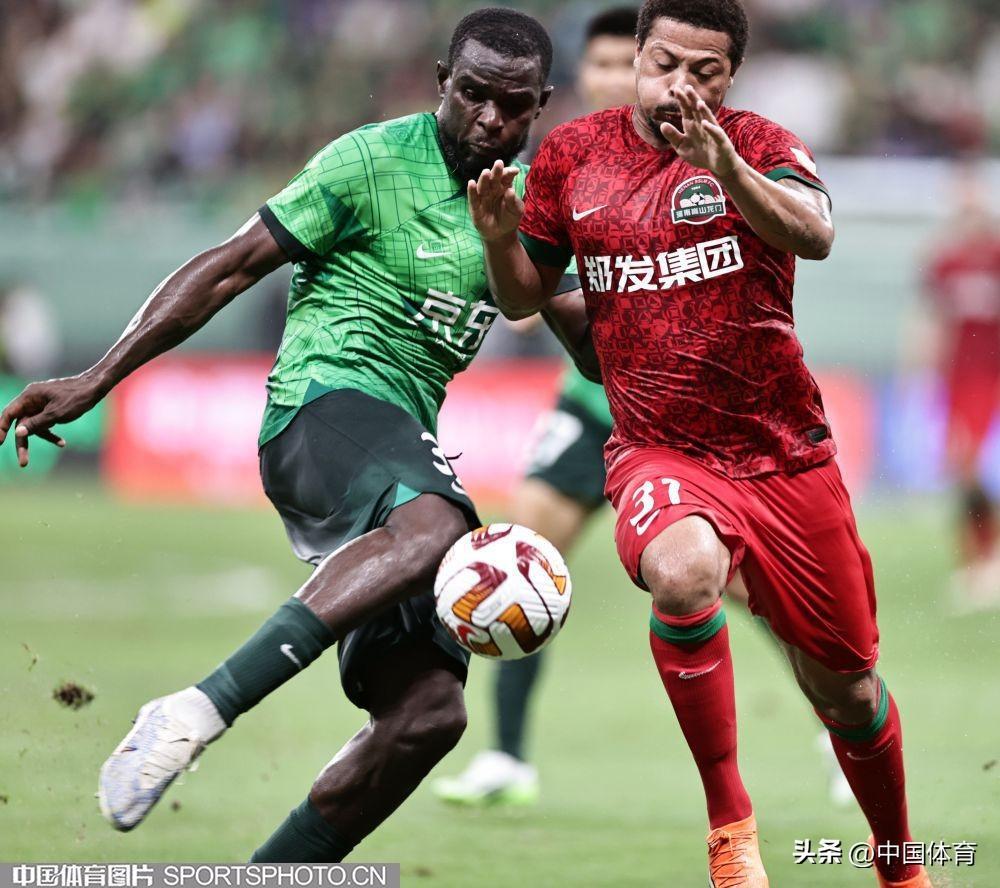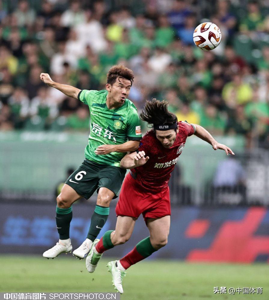 中國體育訊 8月4日晚,2023賽季中國足協超級聯賽繼續第二十輪爭奪。在北京工人體育場,主場作戰的北京國安隊(綠衣)以3比1戰勝河南嵩山龍門隊(紅衣)。此役戰罷,國安重返中超積分榜第六位。當晚的新工體,悶熱得像蒸籠,但仍有4萬餘名北京球迷到現場爲主隊加油助陣。比賽結束,全場齊唱《國安永爭第一》,氣氛熱烈而感人。(中國體育圖片 王憲民 攝)