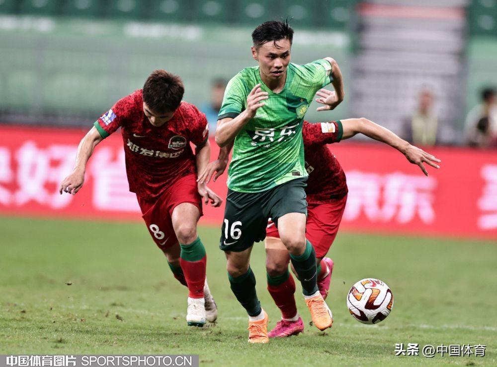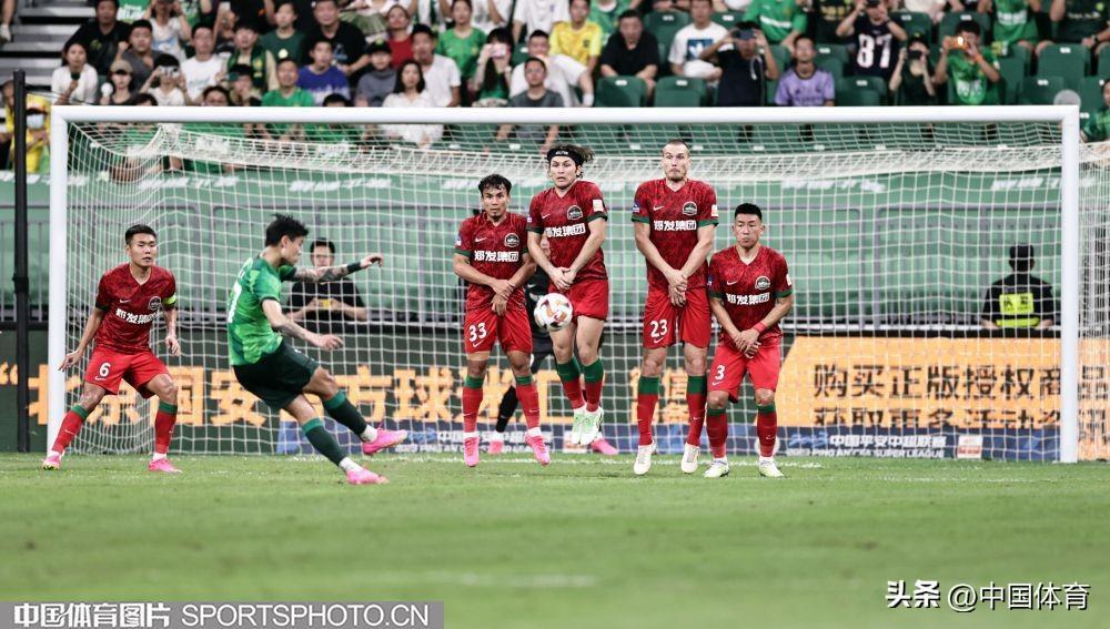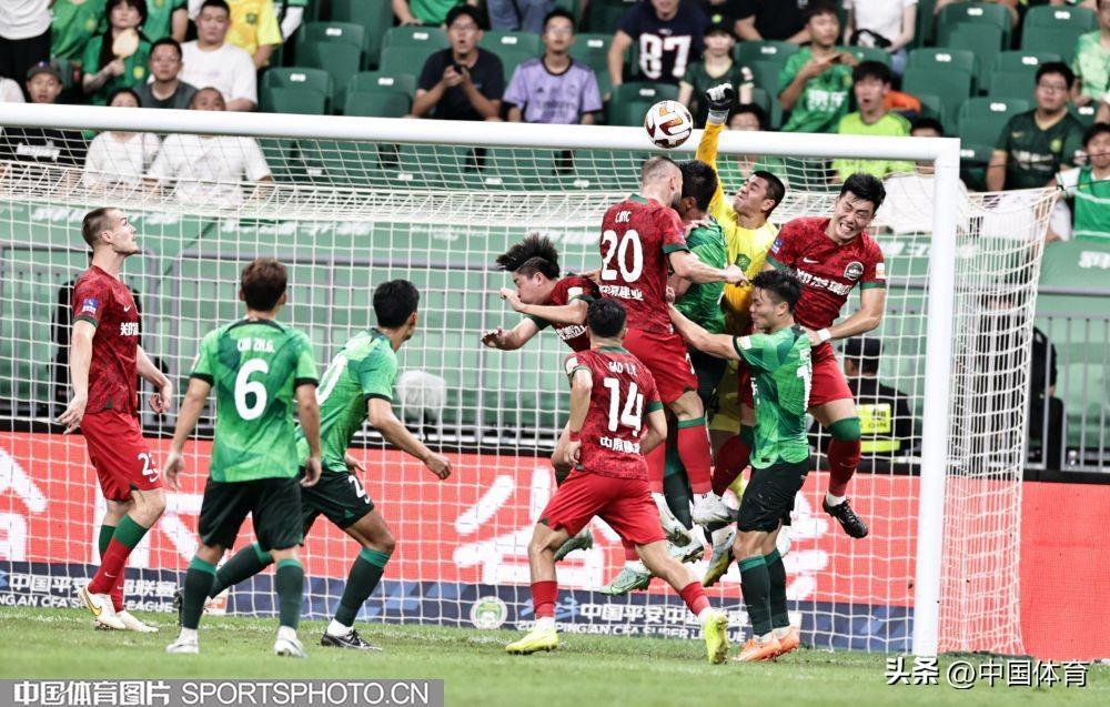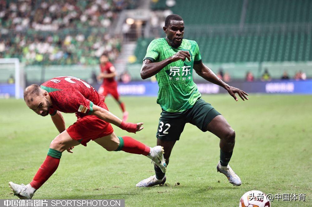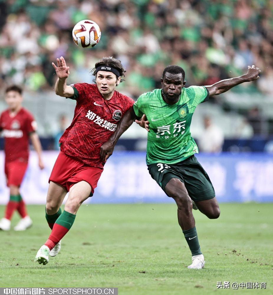 中國體育訊 8月4日晚,2023賽季中國足協超級聯賽繼續第二十輪爭奪。在北京工人體育場,主場作戰的北京國安隊(綠衣)以3比1戰勝河南嵩山龍門隊(紅衣)。此役戰罷,國安重返中超積分榜第六位。當晚的新工體,悶熱得像蒸籠,但仍有4萬餘名北京球迷到現場爲主隊加油助陣。比賽結束,全場齊唱《國安永爭第一》,氣氛熱烈而感人。(中國體育圖片 王憲民 攝)