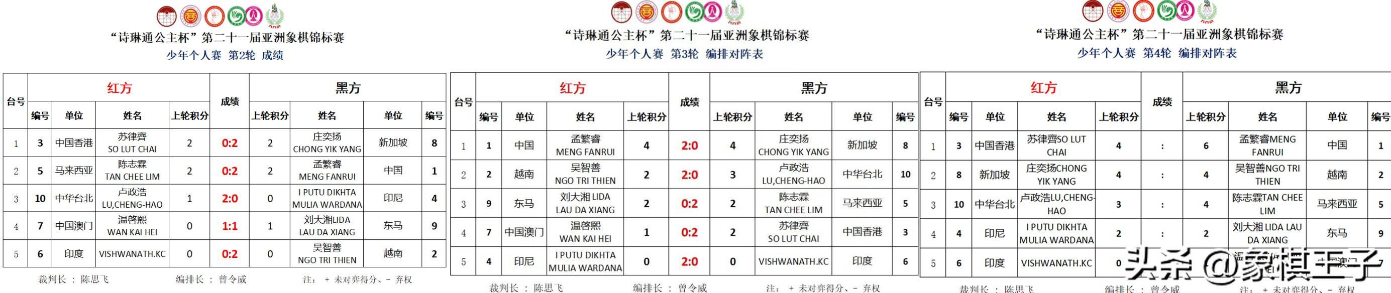 今日小魔童再強力連勝馬來西亞新星陳志霖、新加坡後備力量莊奕揚,孟繁睿三戰連勝,6分豪氣領軍少年組,劍指首座個人洲際王冠。
