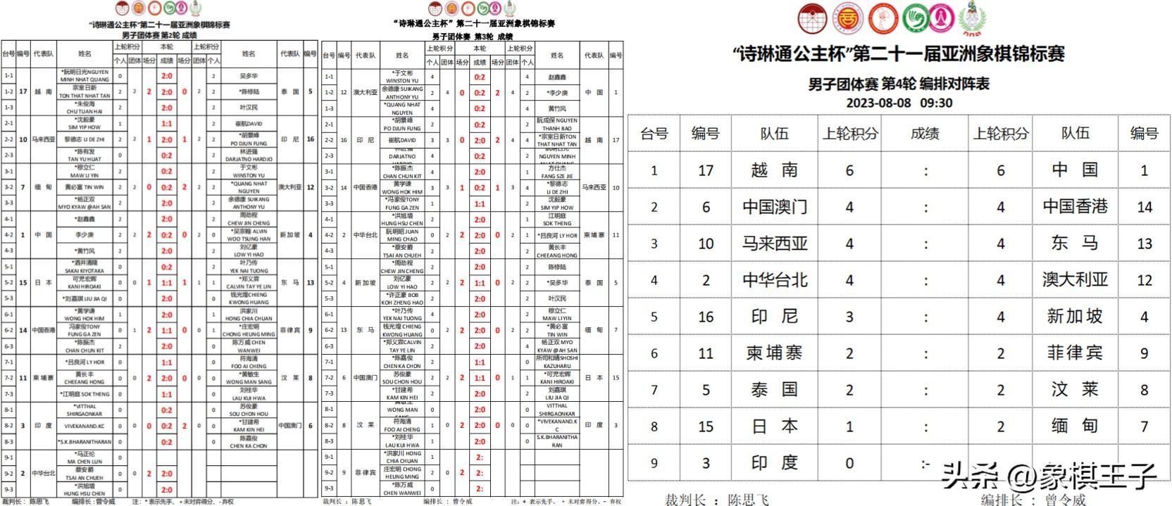 男團的火拼,中國隊與勁敵越南隊同取三連勝,6分排列第一集團,交鬥於第四輪頭臺,火力搏鬥。