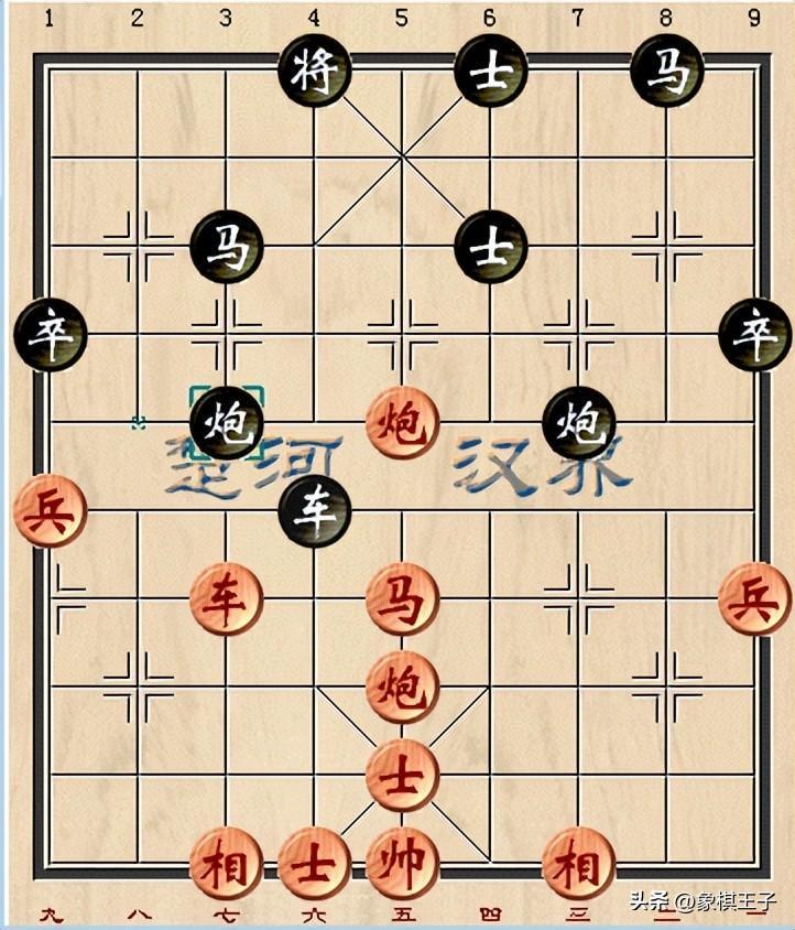 黑多子多勢,只需車退一將,讓紅帥上三樓,平開窩心中炮,炮5平4等一手,下補中士,就必然勝定。