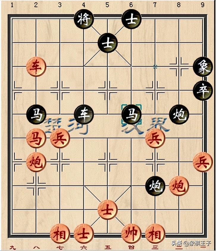 紅棋佈陣未成功,王天一思索之下,決意簡化,棋局導入雙車炮雙兵仕相全對雙車馬雙卒士象全。