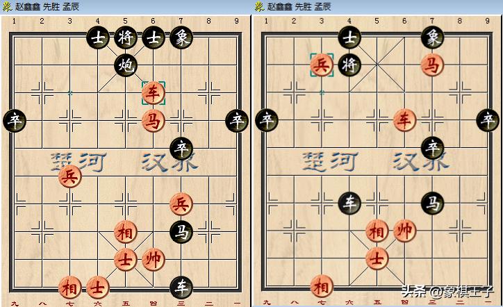 孟辰大好之局奇異失手,附加賽,趙鑫鑫執先,再出中炮局,此式孟辰仍是和了就行,再對列炮陣。