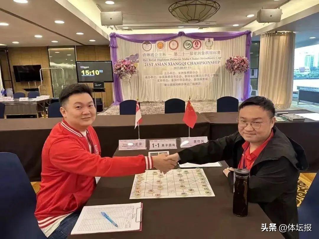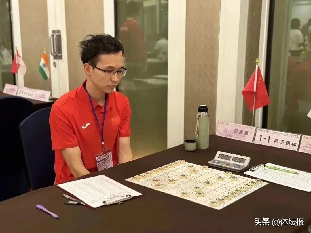 趙鑫鑫和黃竹風代表中國隊出戰男子團體賽。在9日下午結束的男子團體冠亞軍決賽中,前六輪積分領先的中國隊和新加坡隊再次狹路相逢。根據規則,中國隊在第二輪中戰勝過新加坡隊,決賽中,中國隊只需戰平即可奪冠。