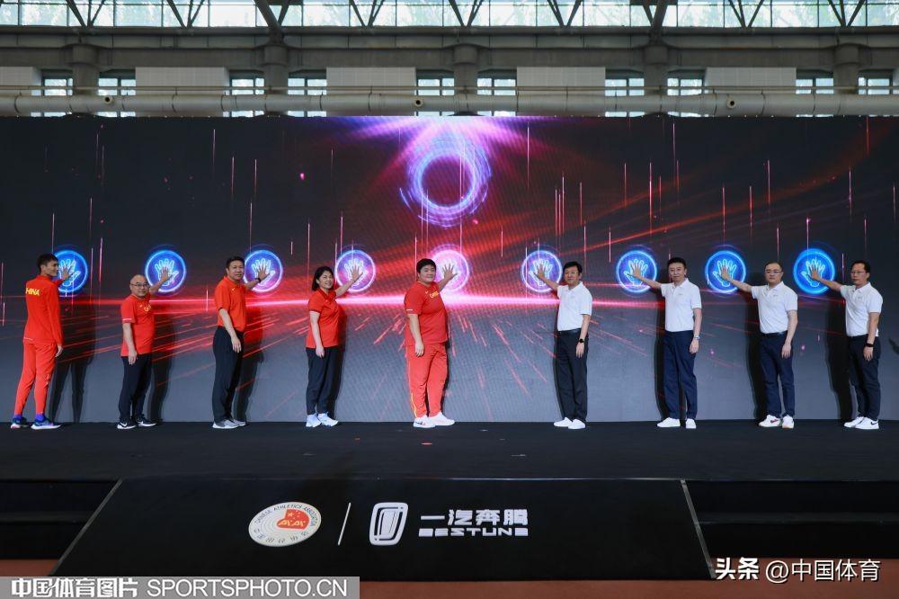 中國體育訊 8月10日,中國國家田徑隊與一汽奔騰合作簽約儀式在北京體育大學舉行,正式啓動國家田徑隊奔騰助力計劃。圖爲活動現場。(中國體育圖片 鹿麟 攝)