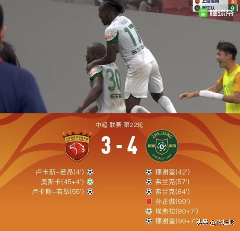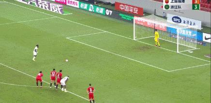 比賽尾聲,補時階段海港隊蔣光太禁區內放倒萊昂納多,爲浙江隊製造絕佳點球機會。隨後埃弗拉主罰被門將撲出,所幸穆謝奎補射得手。