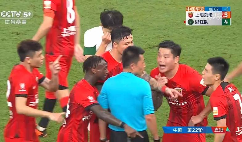 而你以爲補時階段的劇本就這樣了嗎,由於有絕殺進球出現,比賽又拖延了幾分鐘,第101分鐘,上港隊也有一次疑似點球的機會,武磊在進球內摔倒,上港球員圍攻裁判,討要說法,不過主裁判沒有任何表示,認爲武磊摔倒並非浙江隊的防守犯規動作,沒有給牌,甚至還給抗議的上港球員一張黃牌。