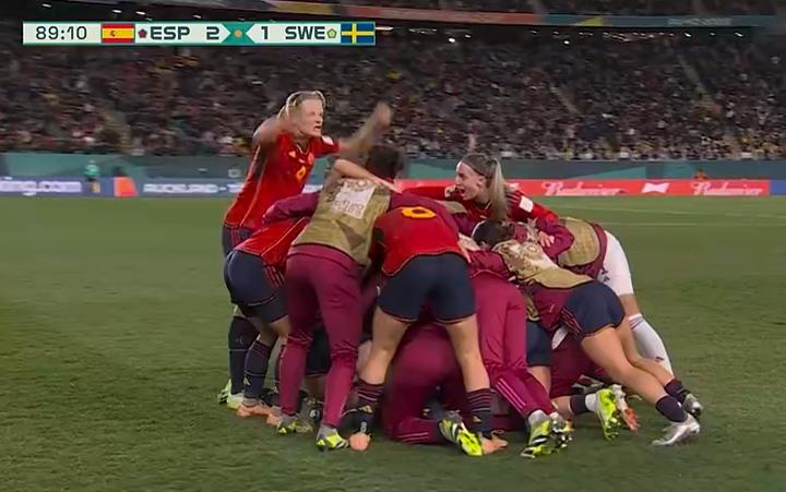 餘下的時間,瑞典一度扳平比分,但僅僅1分鐘之後,又被西班牙洞穿城池,比賽第89分鐘,來自卡蒙娜的禁區外爆射,西班牙2-1被絕平到反絕殺,率先闖入了本次女足世界盃的決賽。