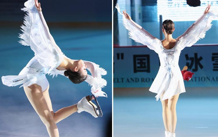 而在踏上冰面的那一刻,白色帶燈光的特製戰袍又讓人眼前一亮,奧運冠軍在冰場上翩翩起舞,完美跳躍,宛若精靈,美麗動人的容顏,優雅纖細的身姿,精湛的花滑技術讓現場粉絲髮出陣陣尖叫,雖然場地比不上高規格的滑冰館,但謝爾巴科娃依然全情投入,用心演出,敬業精神讓人欣慰。