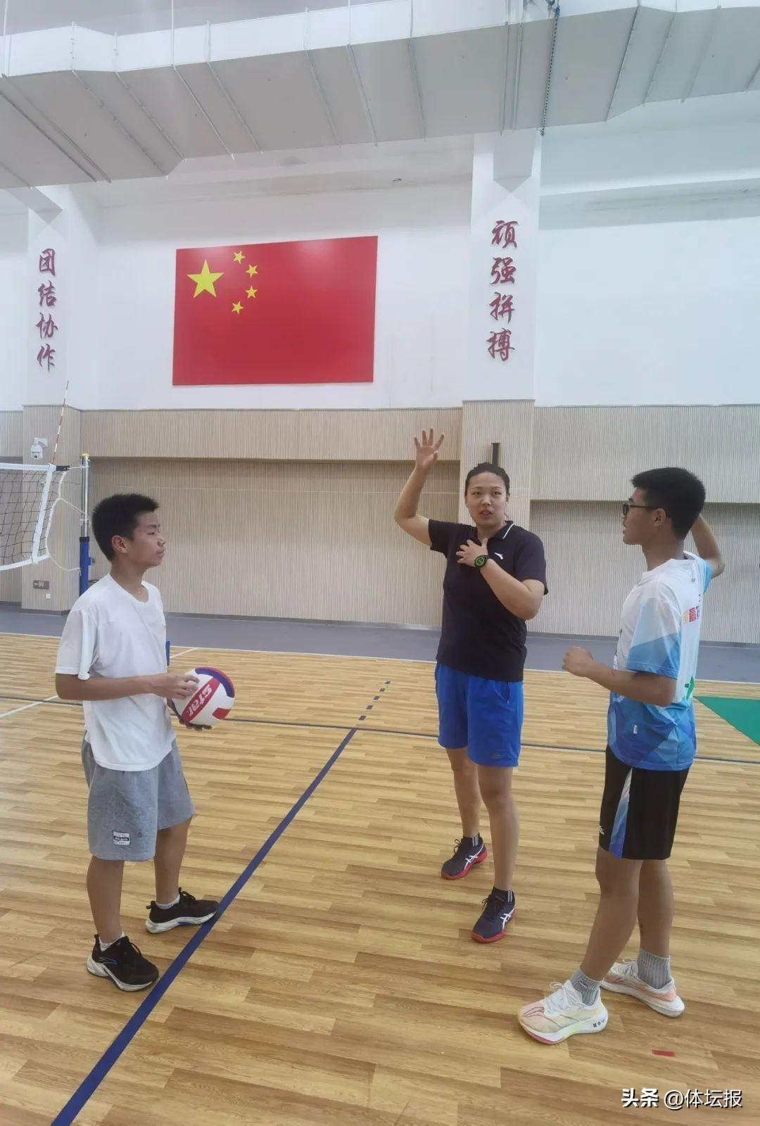 在操場上時不時吹口哨、大聲指導隊員們的,就是該校體育老師楊舟。楊舟曾是浙江女排隊員,不僅拿過女排世界冠軍、亞洲冠軍,畢業於北京體育大學深造,是國際級健將。2022年,她進入湖州市第四中學教育集團,成爲一名基層體育老師,除了給孩子們上體育課,還帶訓校排球隊。