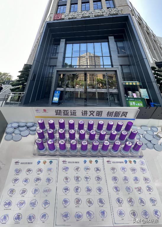 這裏是杭州擁有最多亞運紀念章的打卡點,可以一次性將61個亞運項目的章蓋齊。現場可以黑白打印,但需要自己提前準備好模板,最好選擇配有各個項目名稱的模板,因爲人多,章位置放錯容易混淆。