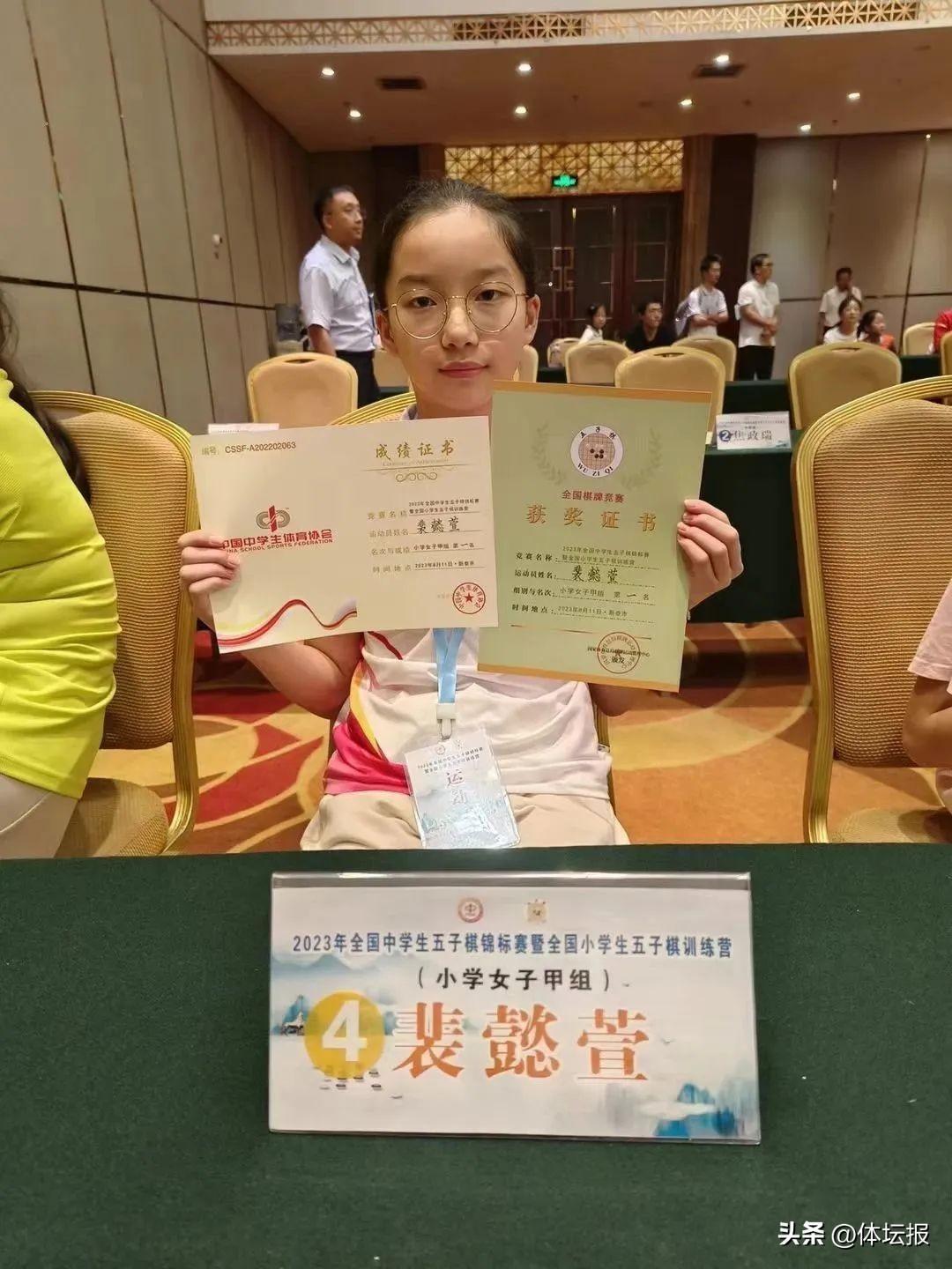 日前,在山東舉行的2023年全國中學生五子棋錦標賽暨全國小學生五子棋訓練營上,來自全國40支隊伍166位小棋手展開黑白之間的較量。其中,浙江隊小棋手裴懿萱以出色表現奪得小學女子甲組冠軍。
