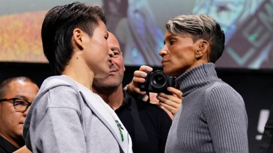 美國波士頓,張偉麗將在UFC292聯合主賽,對決巴西選手阿曼達-萊莫斯,捍衛自己的草量級冠軍金腰帶,她強任她強,清風拂山岡,兩人首次面對面,張偉麗眼神堅毅,氣場強大,當然對手也不示弱,阿曼達-萊莫斯一看就是個狠角色,這場對決勝負難料。